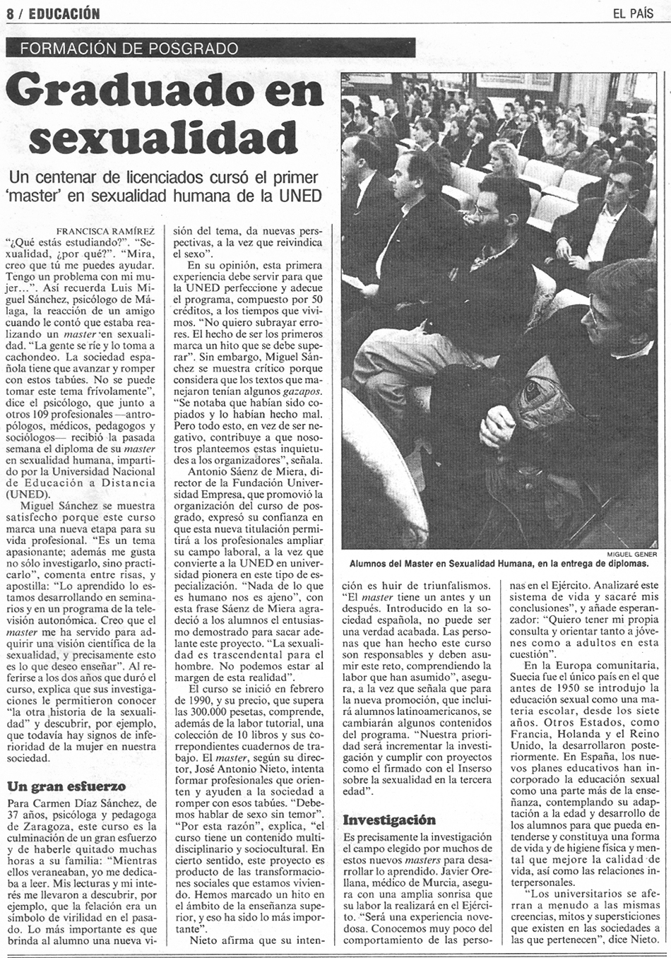 Artículo en «El País» -Graduación en el Master de Sexualidad Humana- Posted on 10-11-2016 , by: admin , in Periódicos , 0 Comments